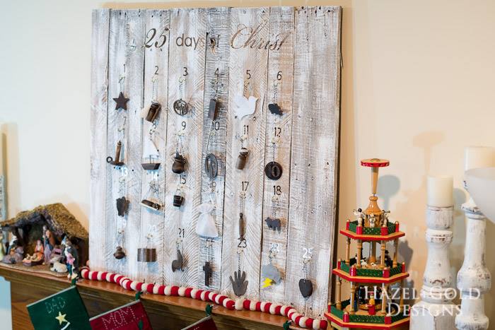 Sheri of Hazel and Gold Designs made her own advent calendar using pieces of wood and hooks. And wow is it awesome. The beauty of it is that you can customize it any way you want.